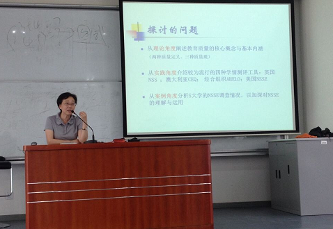 在报告中,夏人青教授首先从宏观到微观提出了本场报告要讨论的三个问题,并从理论角度阐述了教育质量的核心概念与基本内涵;其次,从实践角度介绍了英国、澳大利亚和世界经合组织的三种学情测评工具,并从调查的主体、对象、内容和目的四个方面归纳总结了各种学情测评工具的特点。在此基础上,从概念、特征、影响因素以及意义与价值等方面详细介绍了美国的学情测评工具NSSE,阐述了NSSE的优势。最后,夏人青教授通过具体案例的分析,进一步加深了同学们对NSSE的理解。