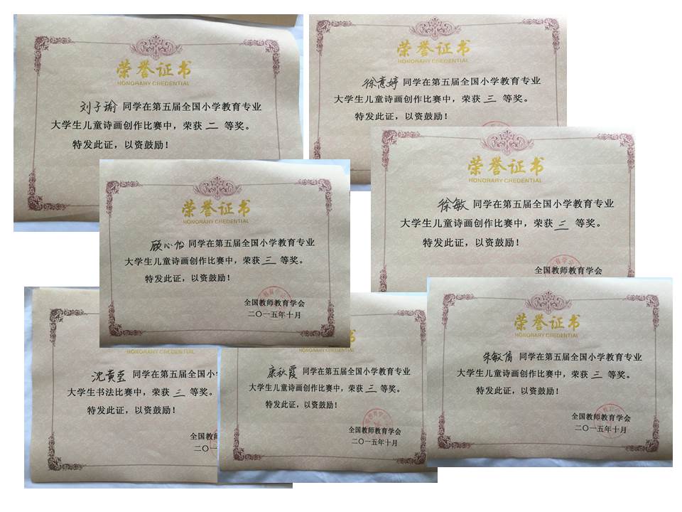 这是我系学生首次参加全国小教专业大学生书法诗画比赛,七位同学获奖,是一次零的突破。