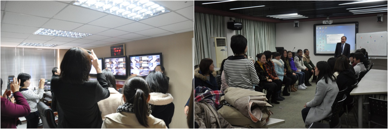 上午,夏院长致欢迎词,并向日本代表团介绍了44118太阳成城集团及tyc41183太阳成集团的基本情况,丁炜副院长介绍了我院初教系小学教育专业学生培养情况,计算机中心罗琦老师介绍并带领参观了我院微格教学设备。之后,双方探讨了中日小学教师培养和小学分科及全科设置的一些问题,并初步达成了今后两校加强合作交流的意向。
