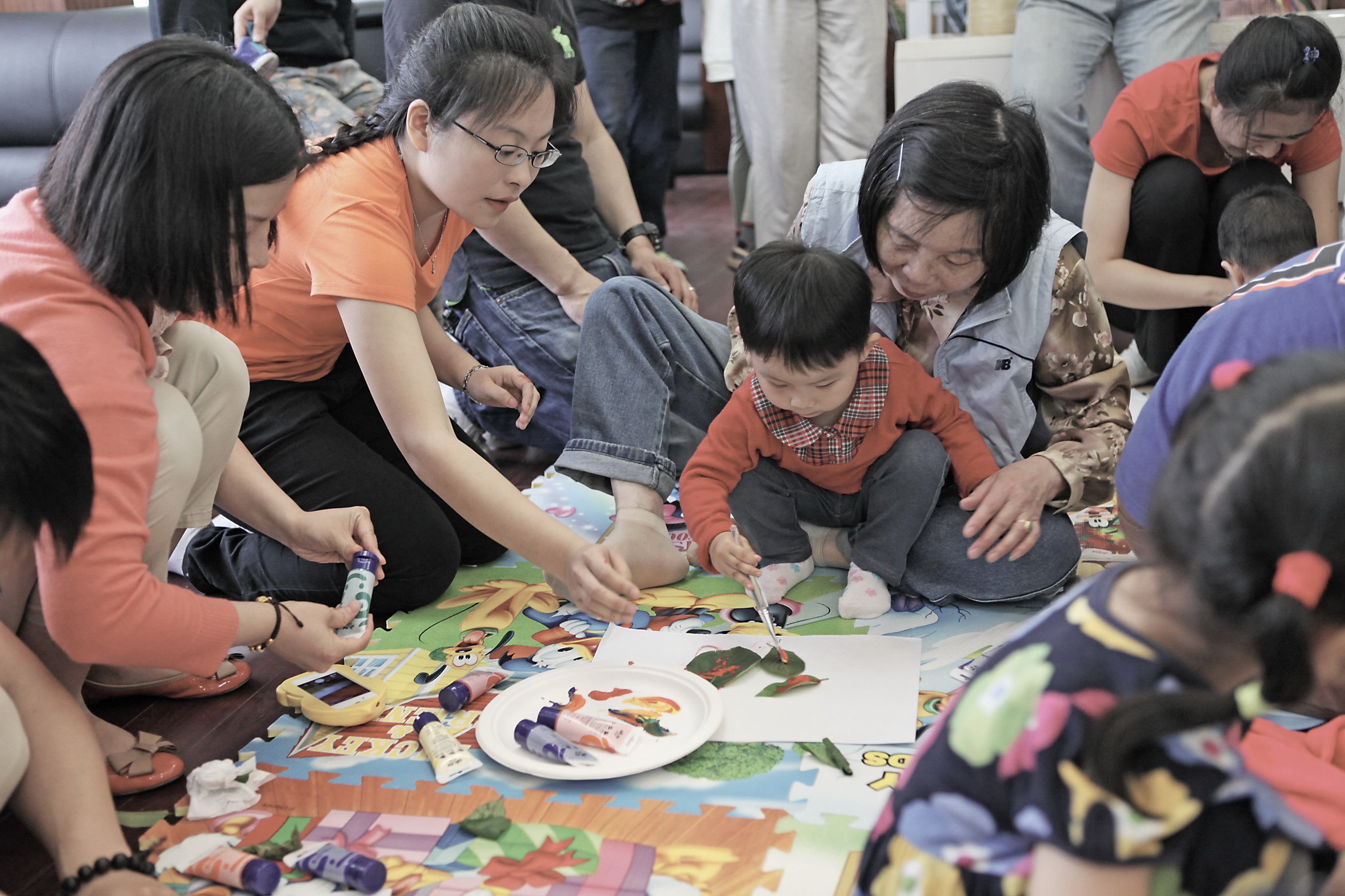 在黎松涛、金钧与陈敏燕老师的精心布置下,工会活动室顿时充满了节日的欢乐气氛。首先是13级学前专业学生带领孩子们进行了欢快热烈的“非洲精灵”律动操。在吴珺老师粗犷有力的手鼓伴奏下,孩子们尽情舞动,体验了一把非洲舞蹈的质朴与奔放。随后汪磊老师与小助手们为孩子们带来了有趣的亲子拓印彩绘活动,美丽的非洲纹样图章与形状各异的落叶,在画纸与孩子们的手臂上留下了斑斓跳跃的色彩。在互动游戏环节,何慧华老师请来了早教中心的老师为孩子们送上有趣的吹泡泡游戏。