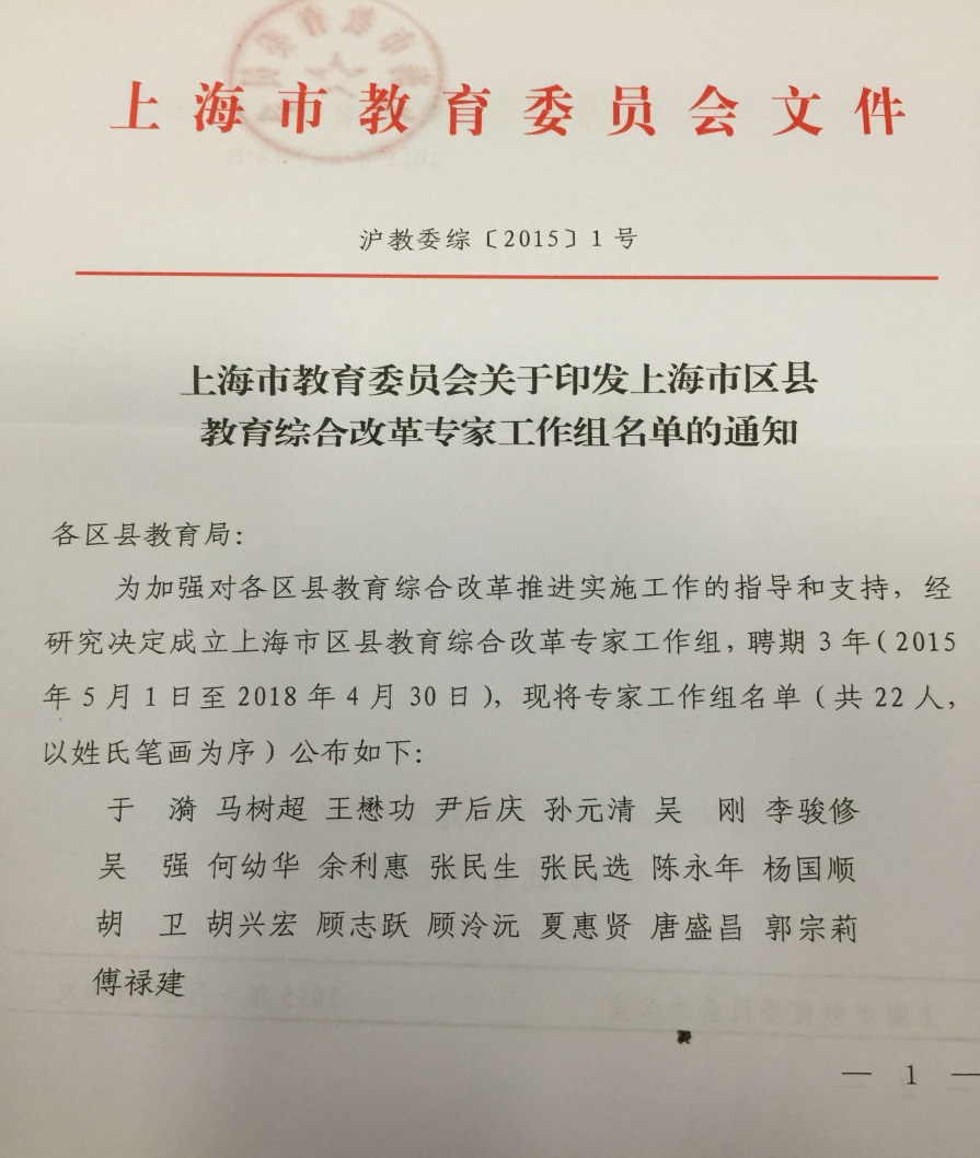 张民选、夏惠贤两位教授入选上海市区县教育综合改革专家组成员