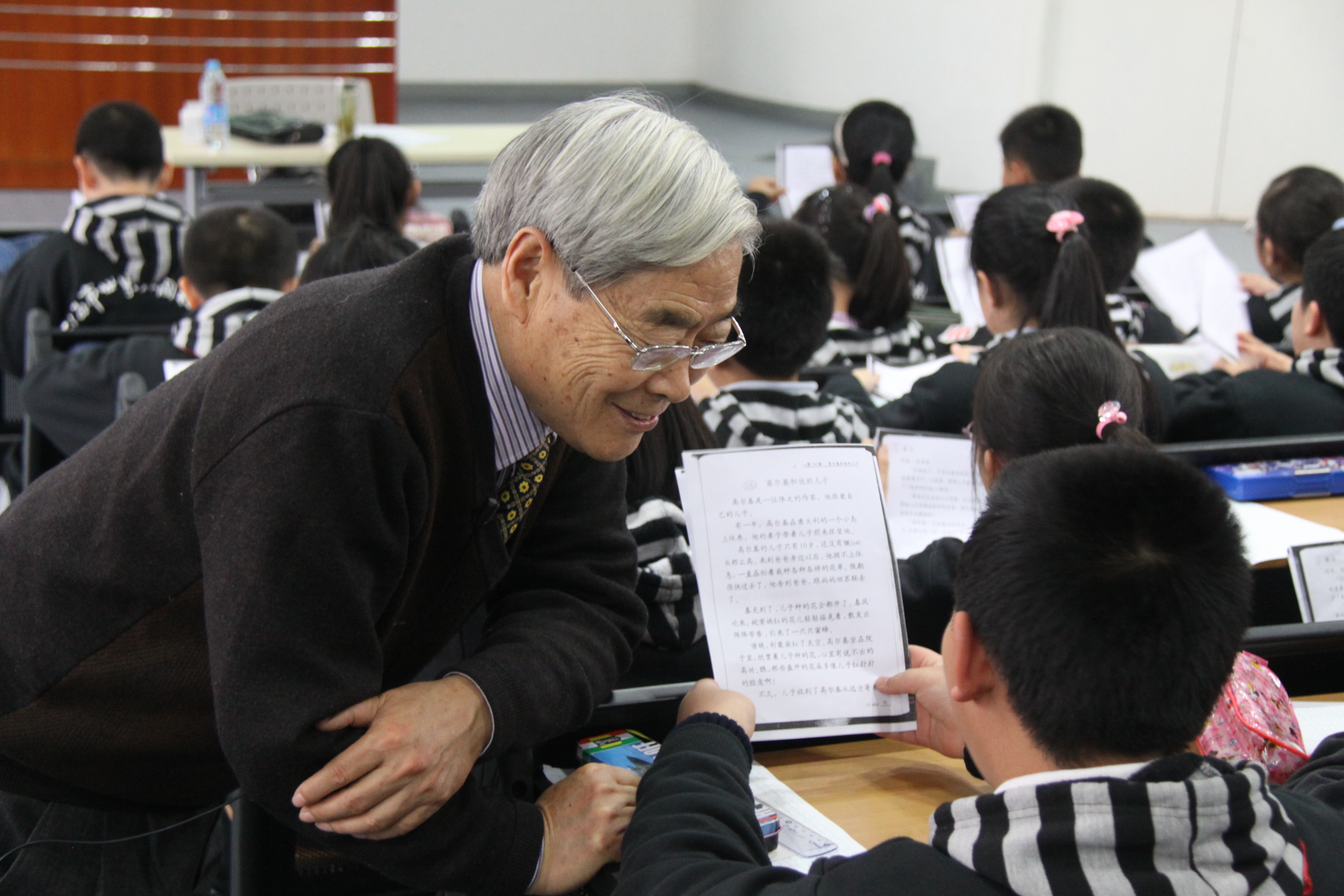 2010年11月30日,全国特级教师于永正受邀来到44118太阳成城集团的教师教育创新基地,为国培班及我院小学教育专业的同学们带来一篇小学五年级课文《高尔基和他的儿子》的精彩教学展示。阴霾的雨天阻挡不了学员们及我院学生热情的脚步。中午12点刚过就有人陆续来到四教B座201教室门口等候开场。一位带着眼镜、头发花白的慈祥老人出现了,他就是著名的于永正老师。此时全场已座无虚席。下午一点半,随着世外小学五年级某班的到场,课正式开始了。对于《高尔基和他的儿子》这篇课文而言,于老师分版块的教学模式相当清晰,一次是生词教学、朗读训练和练习如何用三句话写回信。没有一道针对课文的练习题,没有太多华丽的辞藻,更没有刻意雕琢的精心设计,这简直让很多老师难以置信,因为在日常教学中,这是老师们都无法办到的。可于老师用情与心还原出一堂最质朴的语文课。他的两次示范朗读使每个人都深深陶醉。是啊,唯有朗读才能引领学生走进作品深处。于老师的示范也给全场启示:示范是最好的老师,从写字到朗读,再从朗读到写作,于老师无一不亲自示范给予孩子们启示。不禁要感叹——教育的第一个名字叫“影响”。大影无形,大教无声。于老师身体力行为我们年轻教师做出了榜样。
