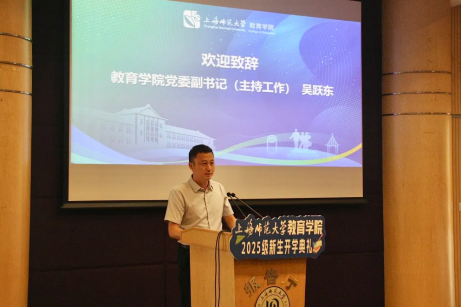 吴跃东在致辞中向全体新生表示热烈欢迎,并围绕“坚守育人初心、精进专业学识、坚持守正创新”提出三点期望。他勉励同学们传承师大教育人的红色基因与师范传统,以德立身、以学赋能、以创致远,努力成长为新时代的“四有”好老师,为建设教育强国注入青春力量。