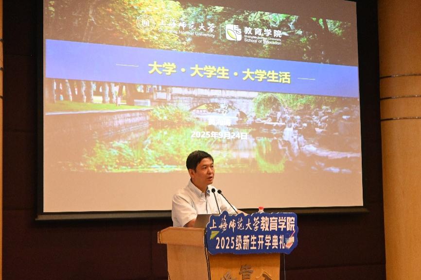 最后,黄海涛教授为全体新生讲授“开学第一课”,围绕“师范底色、专业本色、时代特色”三个方面,引导同学们树立崇高理想、夯实学识基础、勇担育人使命。