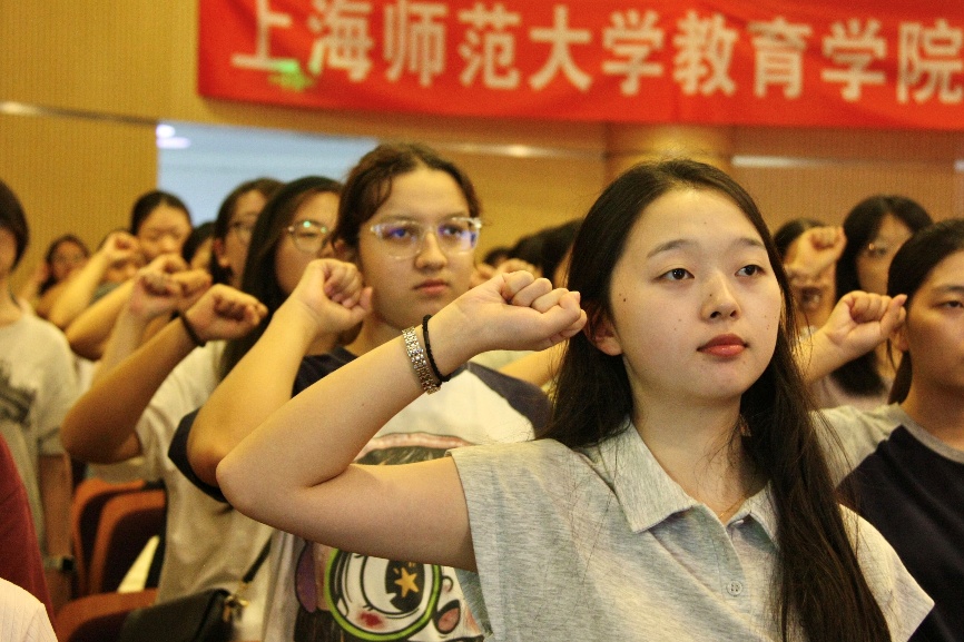 随后,全体2025级师范生举行了庄严的宣誓仪式。誓言铮铮,传递出未来教师对教育事业的忠诚与热爱;初心熠熠,汇聚成教院新人共同的价值追求与使命担当。